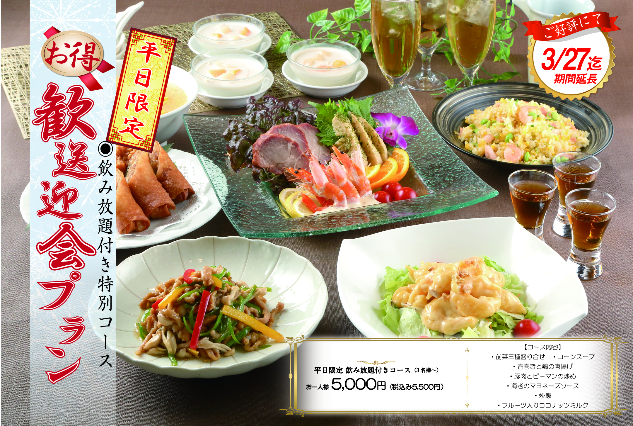 平日限定‼ 飲み放題付きコース”歓送迎会プラン” 3/27迄